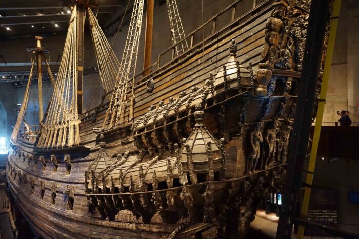 Královská vojenská loď postavená v letech 1625 – 1628 na zakázku krále Gustava II. Adolfa a nesoucí jméno jeho dynastie – Vasa. Kvůli nezvykle vysoké nástavbě a nedostatečně vyváženému těžišti se potopila krátce po vyplutí z přístavu ve Stockholmu. Díky nízké salinitě a teplotě Baltského moře zůstala zakonzervována ve skvělém stavu. Objevena byla po dlouhém pátrání až roku 1956 díky sondě badatele Andersena Franzéna. V roce 1961 byla unikátní technologií vyzvednuta, následně několik desetiletí restaurována a konzervována. V současné době má své vlastní muzeum na ostrově Djurgården, které je nejnavštěvovanějším muzeem Skandinávie.