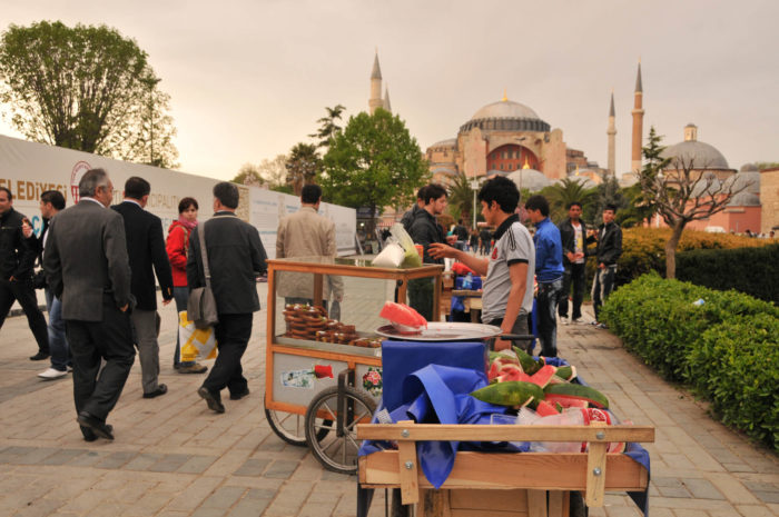 Nejlepší pohledy na “perlu Orientu” a “sirénu Východu”, jak bývá Istanbulu někdy přezdíváno, jsou z paluby městských trajektů přes Bosporský průplav mezi evropskou a asijskou částí města. Když pak vystoupíte na břeh a zabloudíte do labyrintu uliček plných rušných tržišť a orientálních obchůdků, narazíte zde na uličky s dílnami zámečníků, kovářů, ševců, všudypřítomné čajovny, kavárny a útulné restaurace, kde podávají vonící národní specialitu – kebab.