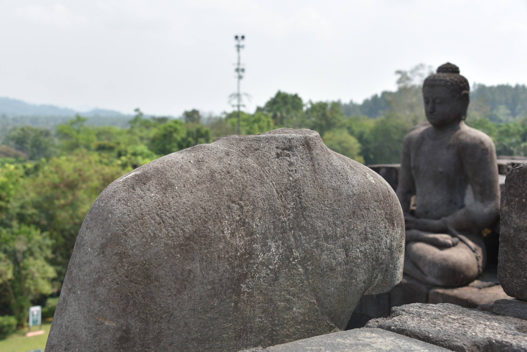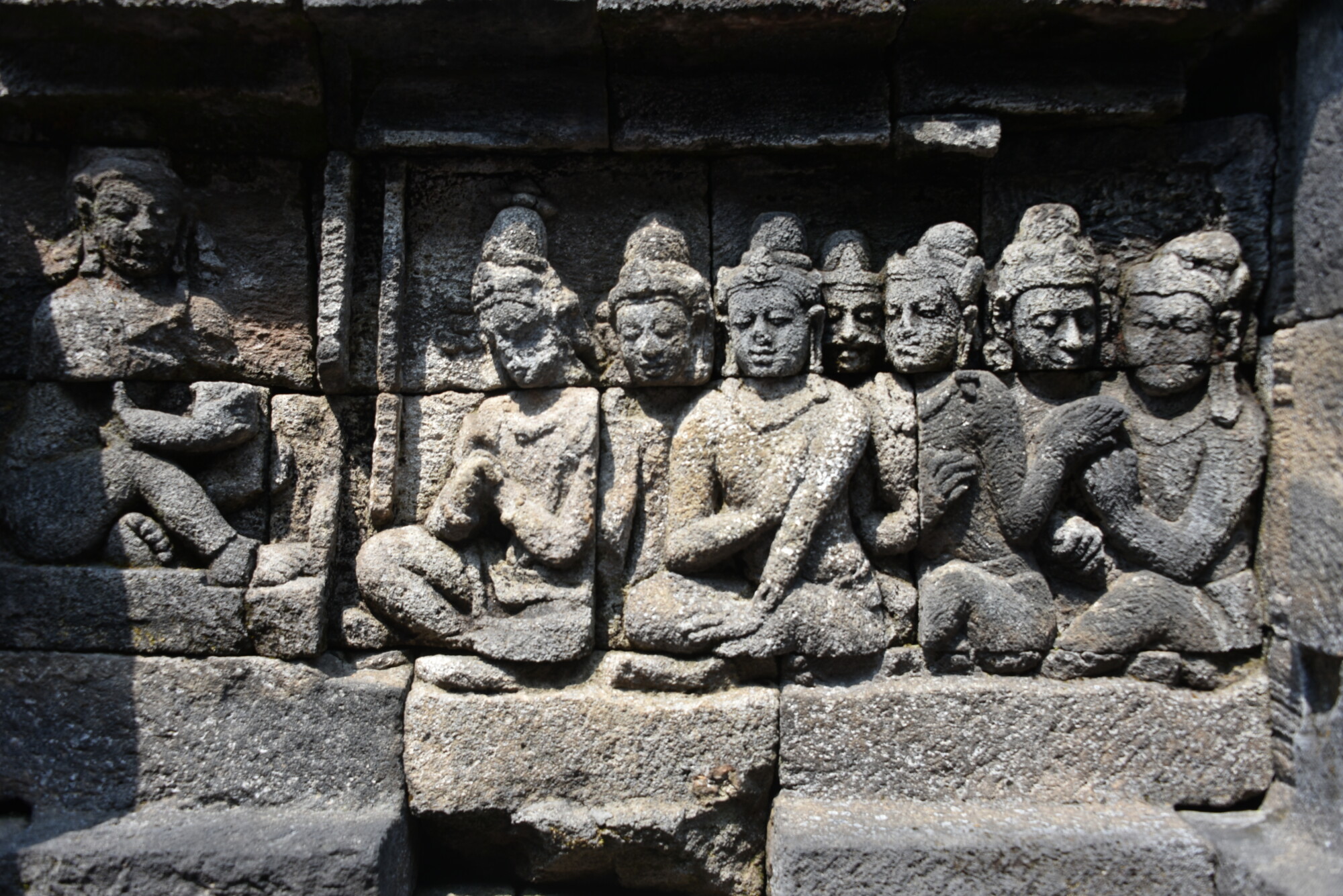 Borobudur je největším buddhistickým chrámem na světě. Byl postaven v 9. století a má strukturu mohutné mandaly, která v buddhismu symbolizuje vesmír. Na jeho stavbu byly použity přibližně dva miliony kamenných kvádrů a skládá se z devíti na sebe položených plošin zakončených centrální kopulí. Celou stavbu zdobí 2 672 reliéfních desek zobrazujících výjevy z Buddhova života. V horním patře Borobuduru se nachází 72 malých stúp se sochami Buddhy, obklopujících velkou centrální stúpu. Chrám je v původním stavu, pouze některé kameny byly částečně zrekonstruovány, žádná část poničeného materiálu však nebyla nahrazena novým. Na některých stúpách proto chybí ukradené nebo zemětřesením poničené části soch. Chrám symbolizuje cestu k osvícení – každá úroveň představuje jiný stupeň duchovního vývoje od světského k božskému.