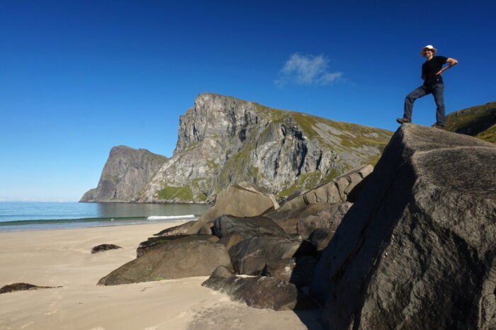 Vydáme se na další známou pláž Uttakliev, odkud budeme pokračovat na vyhlídkový vrchol Himmeltindan neboli Nebeský vrchol.