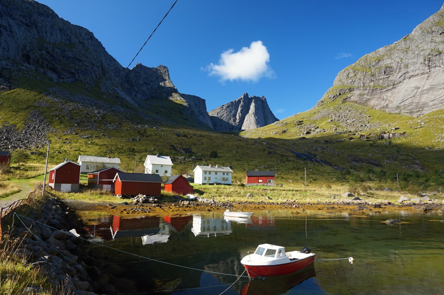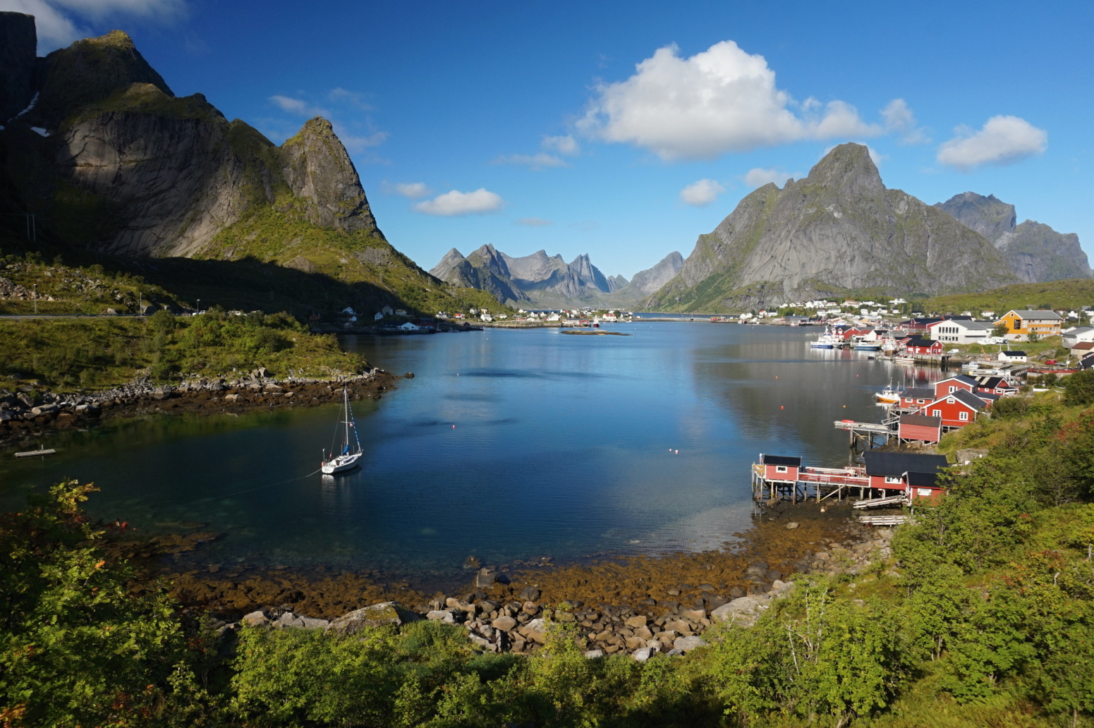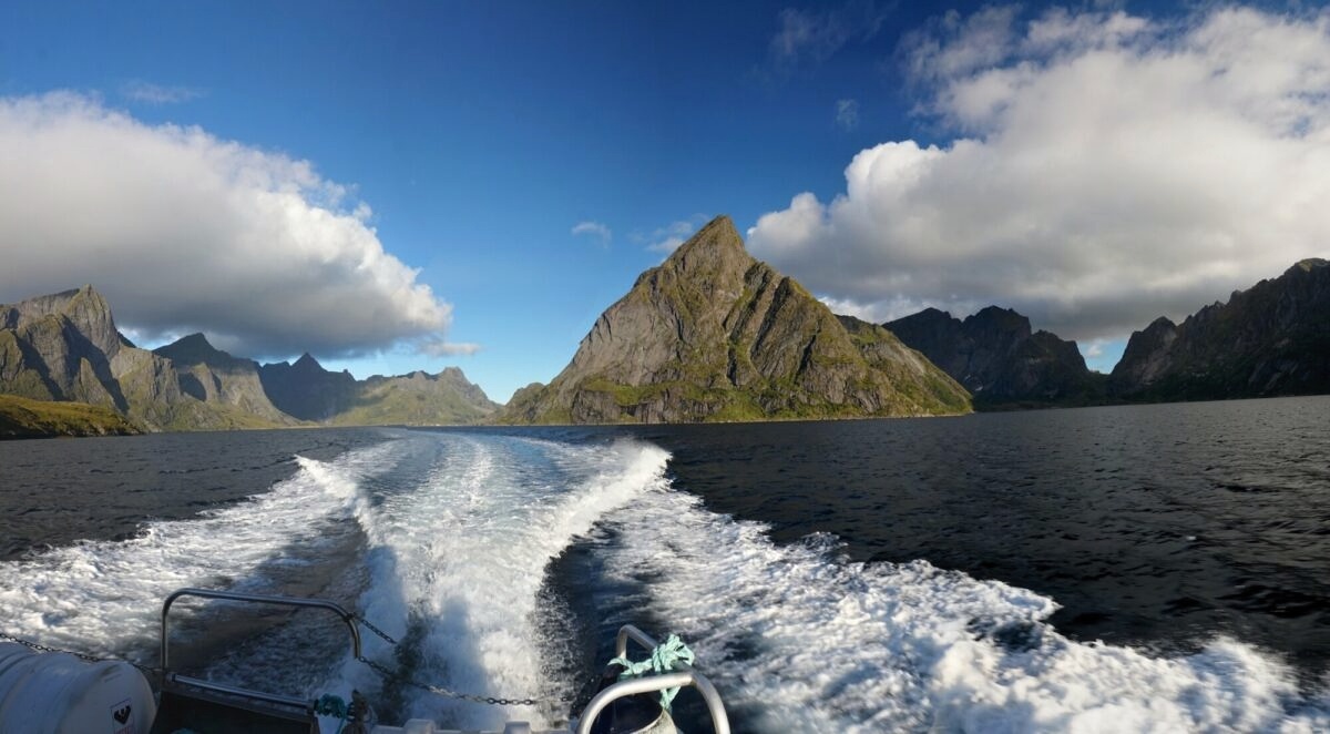 Reine, nejfotografovanější obec Lofot. Plavba lodí po Reinefjordu mezi kolmými skalnímu stěnami do rázovité rybářské osady Vindstad přístupné pouze lodí, procházka na pláž Bunes na severní pobřeží. Je zajímavé vžít se do života lidí trvale pobývajících na místě dostupném výhradně lodí. Zájemci mohou vystoupat na vrchol Helvetestinden (602 m). Pokud budeme mít ještě síly, vystoupíme navečer na nejznámější vyhlídku Lofot, Reinebringen, jinak si ji necháme na některý z dalších dní.
