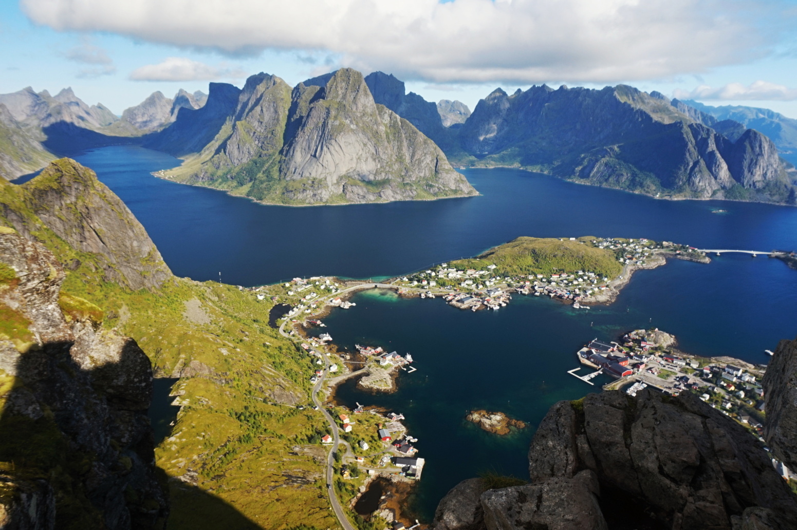 Reinebringen jen bezpochyby nejfotografovanější vyhlídka Lofot. Výstup po schodech působí téměř jako schody do nebe, dá nám tedy zabrat, ale díky malé vzdálenosti je velmi rychlý. Odměnou nám bude doslova letecký výhled na seřazené zuby bizarně tvarovaných hor i místa v oblasti Reinefjordu, která ještě navštívíme nebo jsme navštívili v minulých dnech.