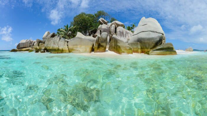V sezóně fouká na ostrově La Digue slabý severozápadní vítr a nejsou velké vlny. Jistě si tedy užijeme pohádkové šnorchlování kolem skal, které mají granitovou strukturu a potom můžeme poobědvat v některé plážové restauraci.