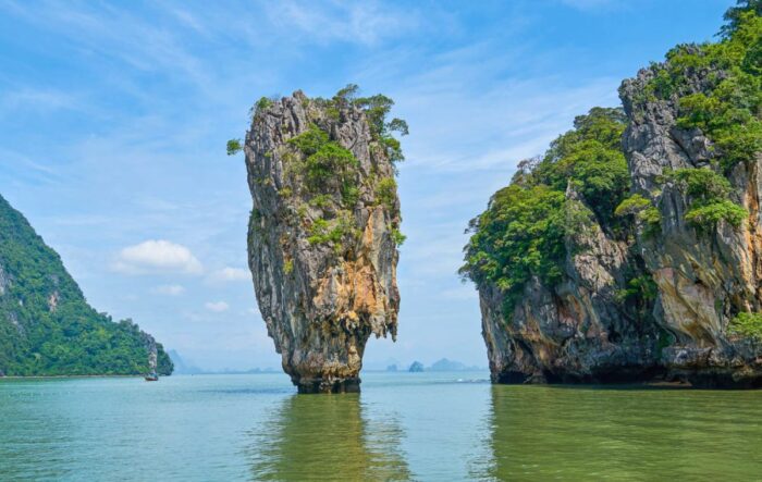 Delší přeplavba do zátoky Phang Nga, která je známá svými ikonickými vápencovými stěnami ostře vystupujícími z moře. Budeme obdivovat malebné scenérie mnoha ostrovů a ostrůvků. Jedním z nejznámějších míst je ostrov Khao Phing Kan, proslulý z filmu „Muž se zlatou zbraní“ jako „James Bond Island“. Můžeme také prozkoumat okolní jeskyně a laguny na motorovém člunu.