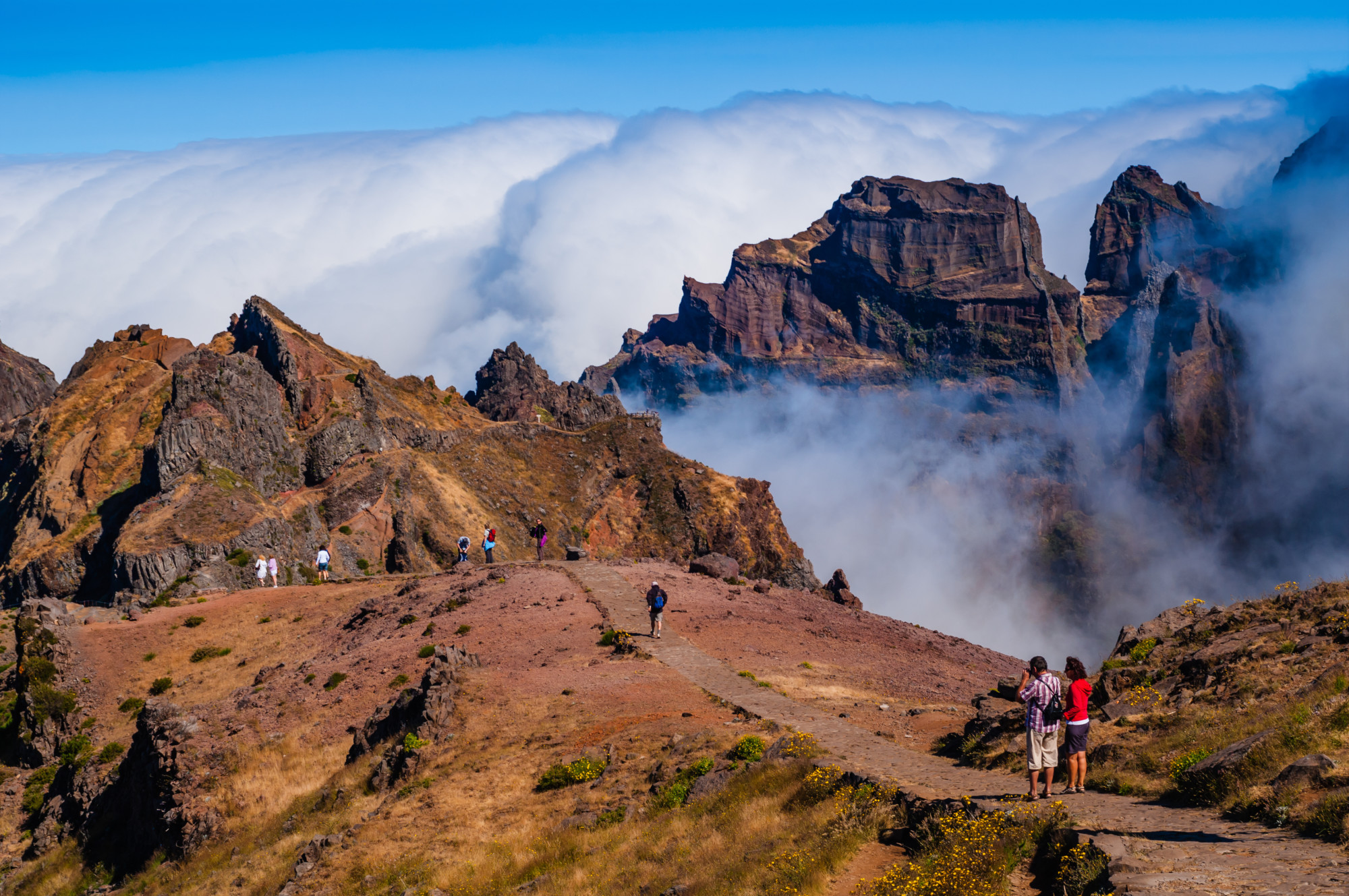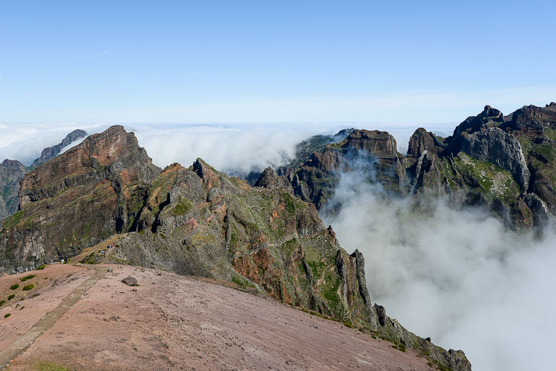 Náročnější horská trasa (8,3 km) z vyhlídky Pico do Arieiro na nejvyšší vrchol ostrova Pico Ruivo s větším převýšením. Místy velmi prudké stoupání (650 m) a klesání (800 m). Cesta je v exponovaných úsecích zajištěná zábradlím. Nedoporučujeme túru absolvovat za deště. Trasu je možné absolvovat v jednodušší variantě: výstup na nejvyšší horu z parkoviště Achada do Teixeira s návratem stejnou cestou zpět. Toto místo je dostupné autem či taxíkem. Samotná cesta na vrchol je podstatně snazší a včetně návratu zabere čas chůze necelé 2 hodiny.
